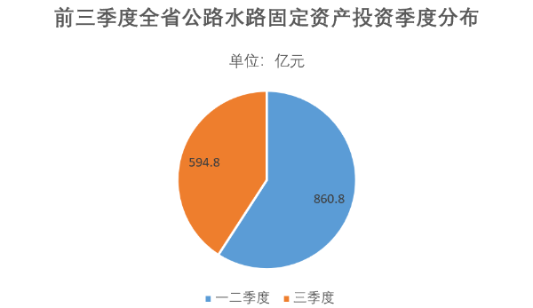前三季度,全省公路水路完成固定资产投资1455.6亿元,同比增长11.6%,增速较上半年加快9.4个百分点,其中三季度完成594.8亿元,同比增长28.6%。