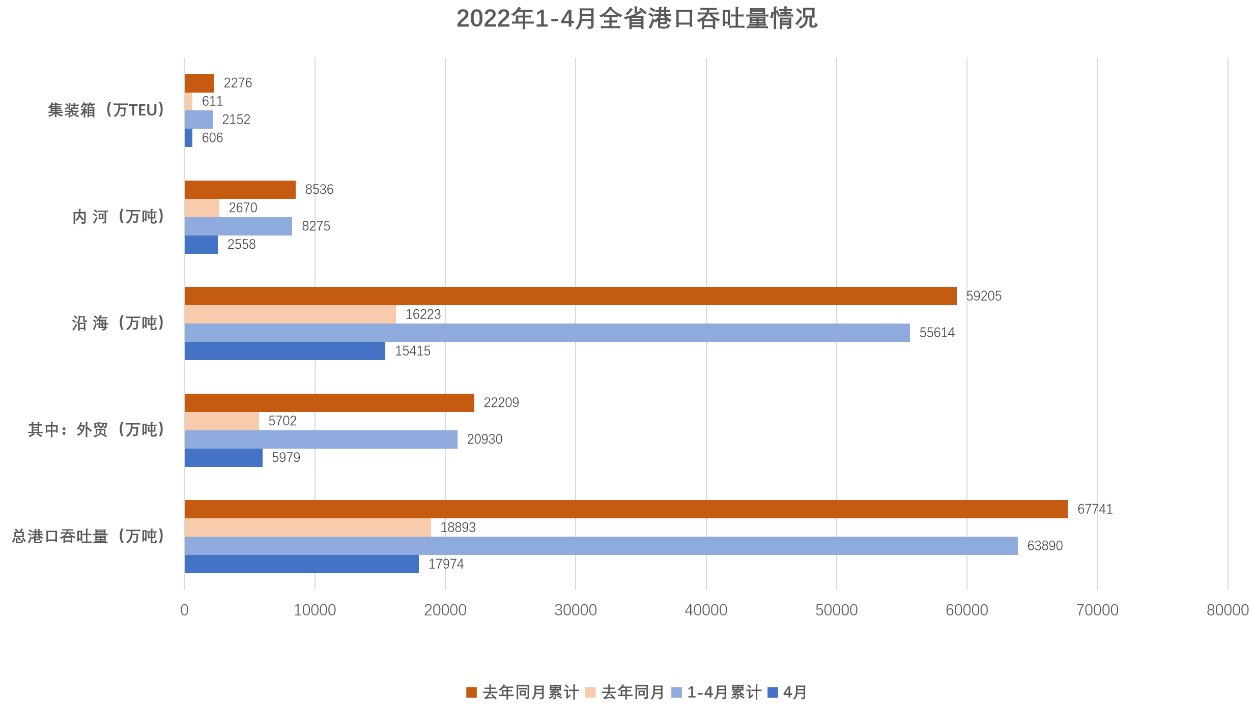 4月,港口货物吞吐量共完成1.79亿吨,比去年同月下降4.9%。